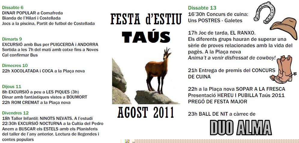 Els organitzadors i tot el poble de Taús estem molt contents i agraits que un estiu més,comptem amb la col.laboració del Diables d´Espluges.